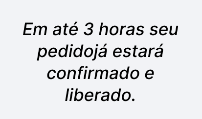 Em até 3 horas seu pedido já estará confirmado e liberado.